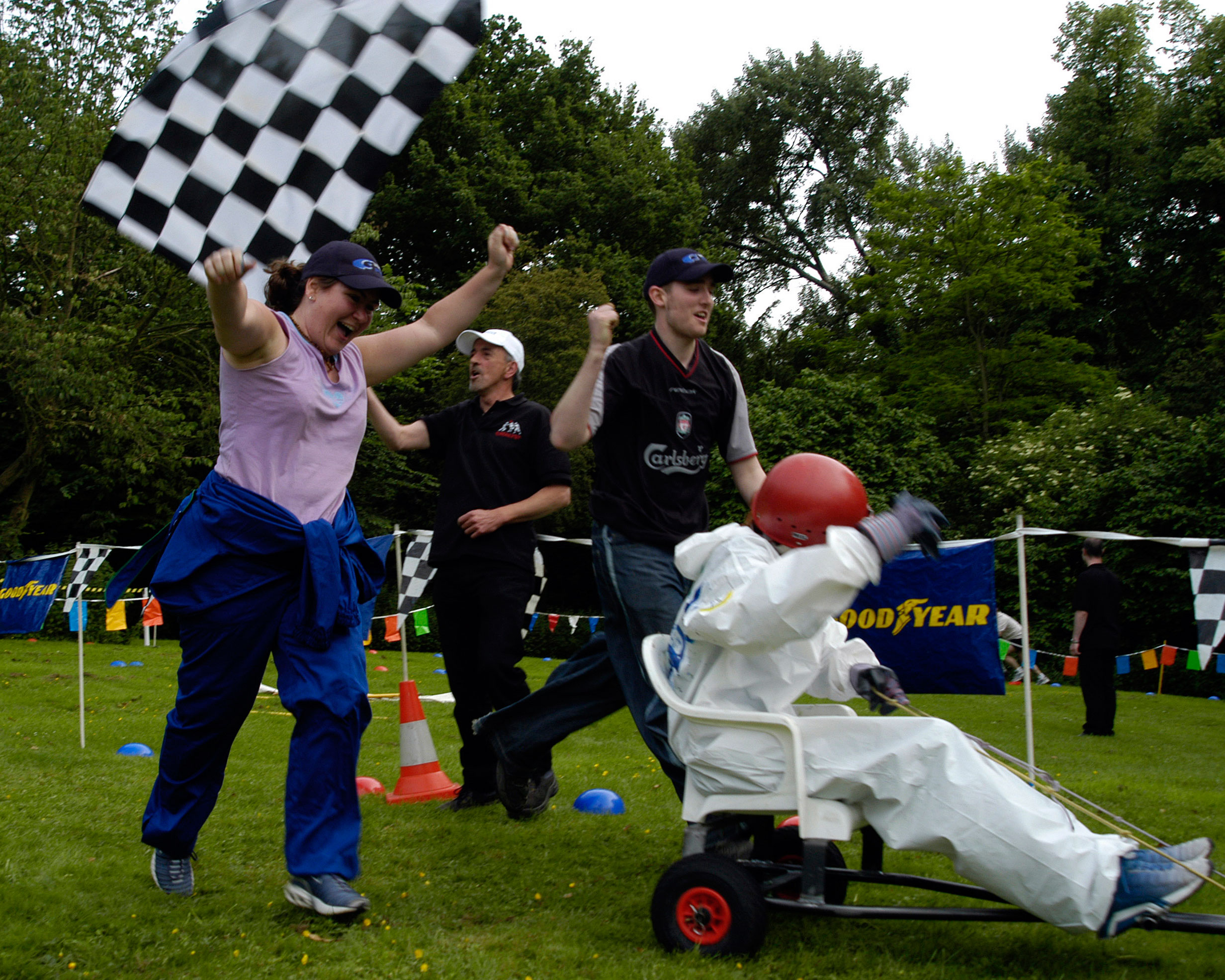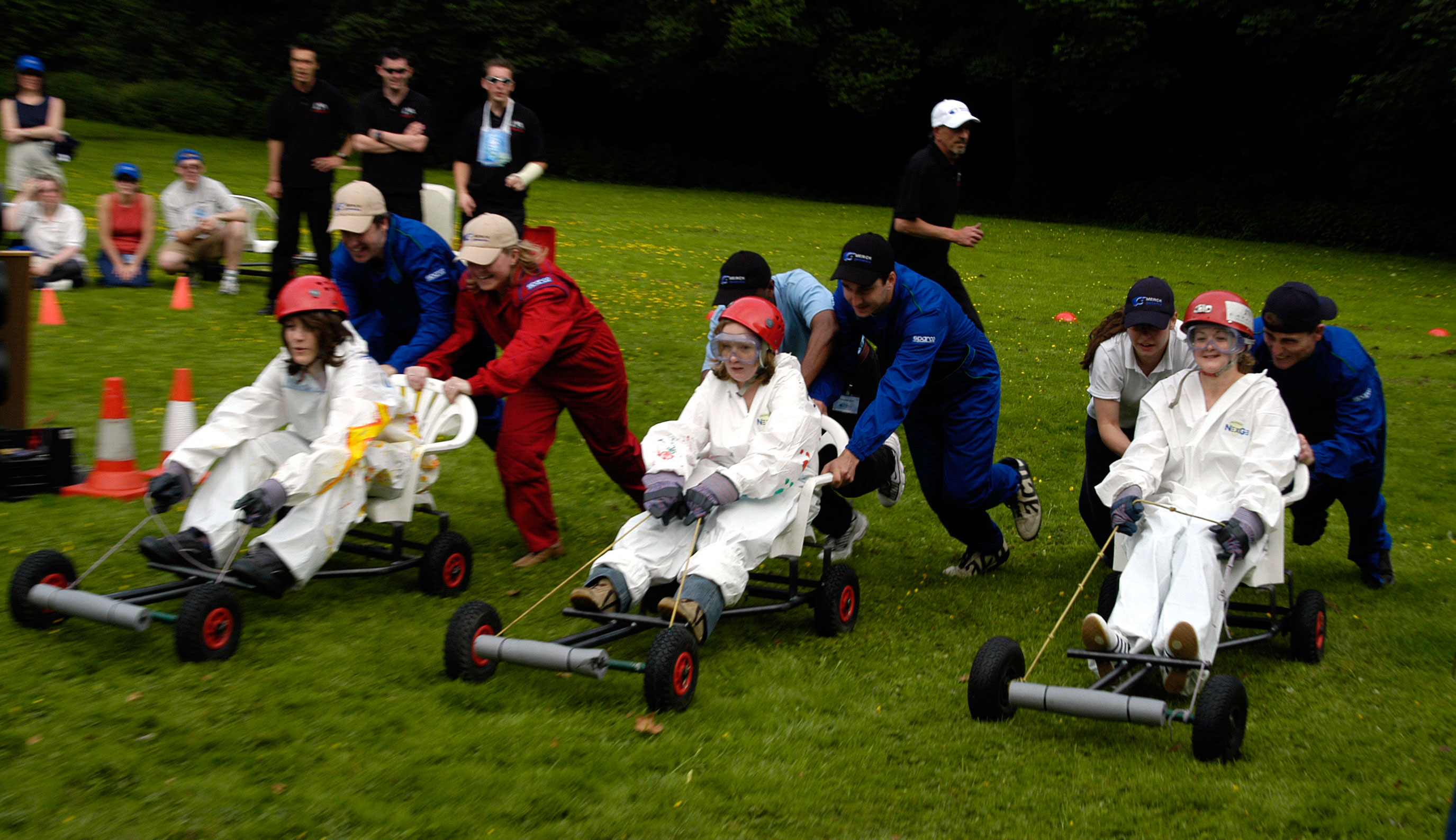 This activity challenges the both the mental and physical abilities of each team member. Each team must build their own hi-tech go-karts, earning car components by taking on a series of initiative challenges. Once complete, the cars are built for speed with a bucket seat, lightweight tubular chassis, wide wheels and race-tuned suspension. Each member of the team takes on a specific role: pusher, driver, pit crew and are encouraged to develop their skills and tactics and create a racing strategy that will help them win! Each team’s performance during the earlier challenges determines their position on the starting grid and the track itself is fully decked out with glass, team colours, starting lights, trackside advertising and the all important race marshals.