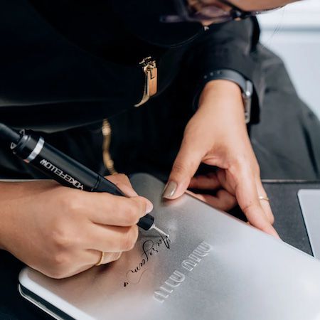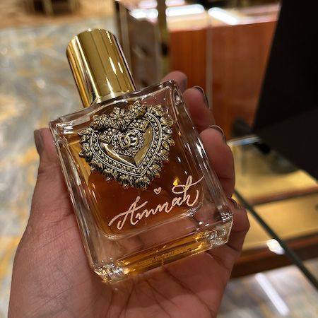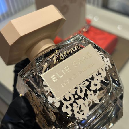 With elegant calligraphy engraving in English or Arabic, she personalises perfume bottles, glassware, and other items