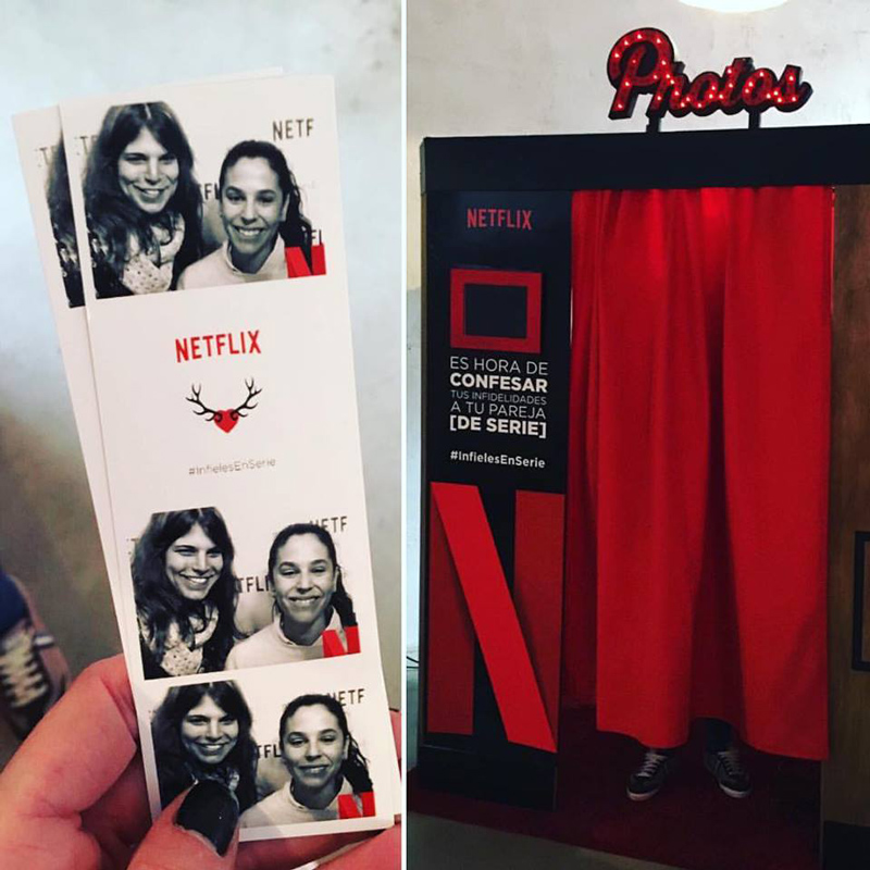 This event photo service can also include hostesses, a diverse range of props and accessories, photo albums and other themed event decor! Having been trusted by numerous big brands in the past, our photo experts have provided photo booths of different types for Netflix, Kenzo or Uno de Cincuenta, among others.