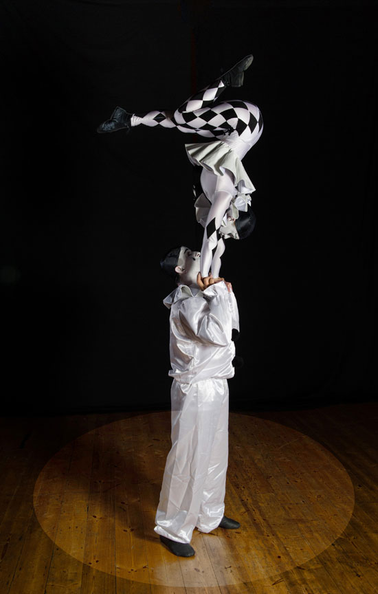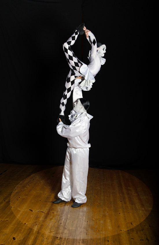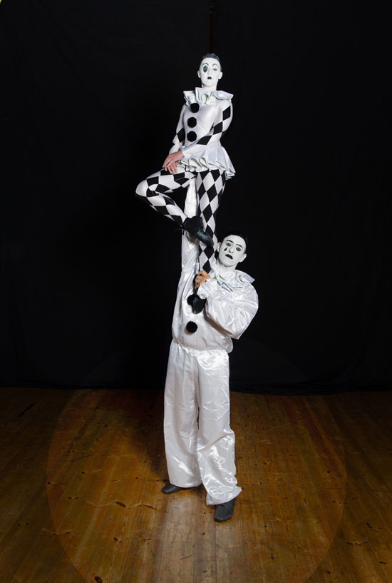 Our brilliant acrobatic statues are an impressive sight to behold, demonstrating their natural flexibility and elegance with every incredible move. Styled after the stock character of classic pantomime, this acrobatic duo are dressed in the typical white frilled costumes of the sad clown Pierrot from commedia dell’arte, making them an ideal choice for themed events.