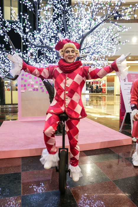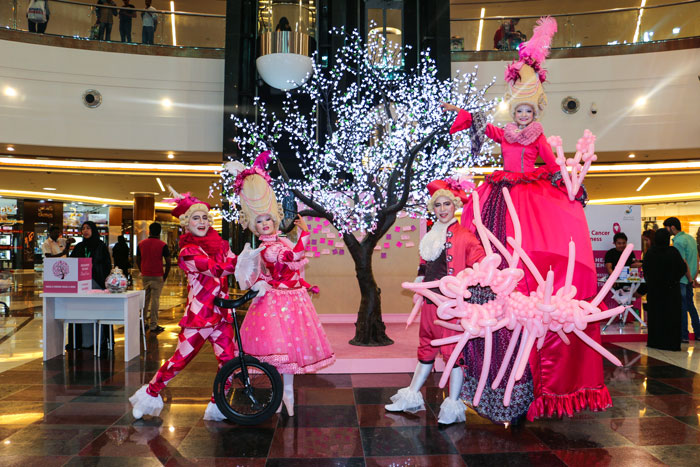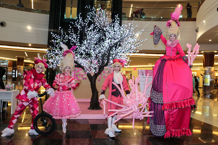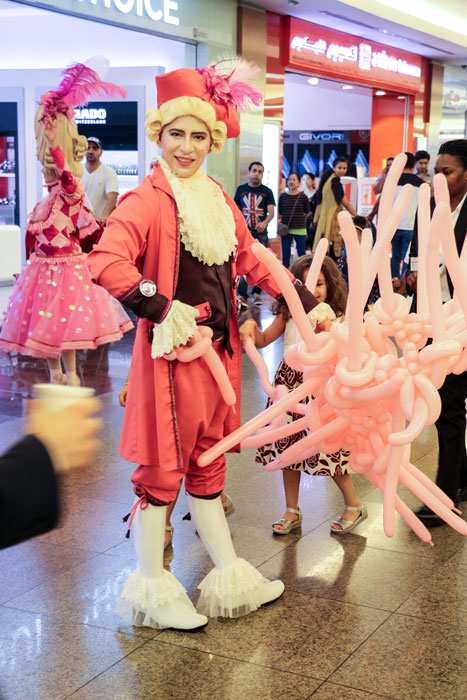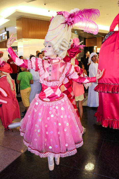 The amazing pink themed baroque characters come as two male and two female costumed performers. Available as a ballerina, a unicyclist, a stilt walker and a ballon modeller handing out pink swords, they deliver interactive entertainment that really engages with the audience. The concept behind the pink themed baroque characters is for breast cancer awareness and they are very well suited to charity fundraising events. Checkout the video to see them in action at a breast cancer awareness event.
