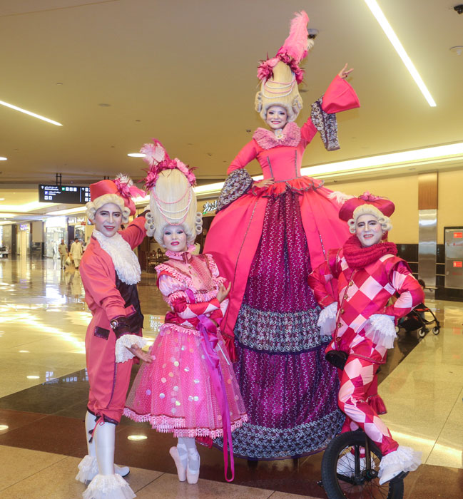 Make an impression at your next event with a walkabout act that is guaranteed to turn heads and pull in a crowd. The pink themed baroque characters are magnificent costumed performers with incredible outfits that stand out in any crowd. The walkabout act brings colour and vibrance wherever it goes and is sure to become a talking point amongst crowds as well as a brilliant photo opportunity for the guests.