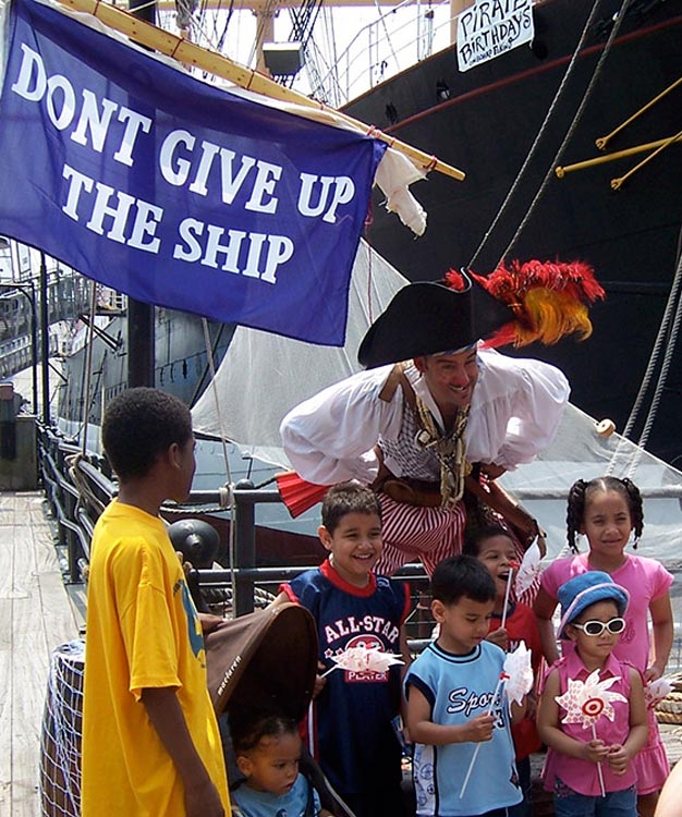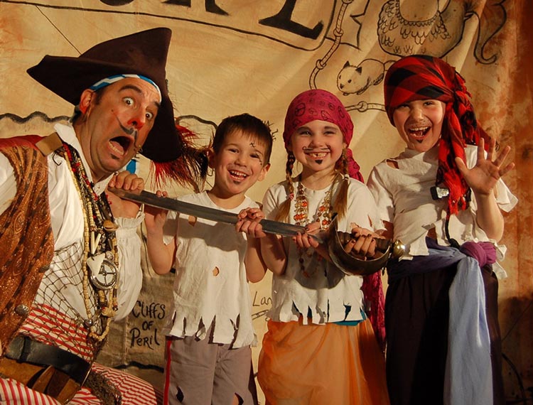 Audiences participate in riotous, joyful competitions that teach youngsters how to stand, walk, talk, sing and laugh like pirates.