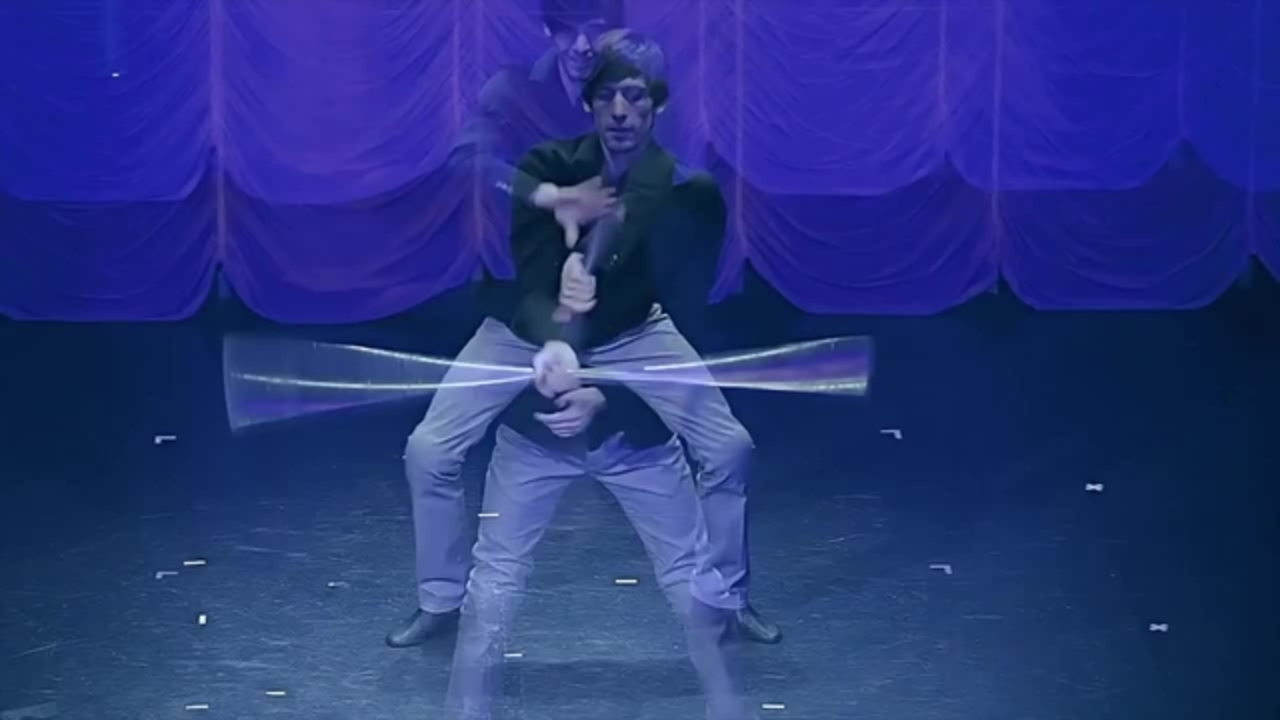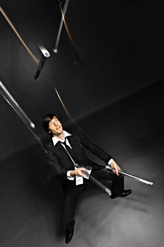 In this spectacular show, he tosses aluminium poles through the air performing amazing juggling tricks that will leave audiences awe-struck! His performance features a varied combination of staff manipulation, devilstick artistry and juggling with up to five poles that will entertain and engage audience of all ages. He can perform in a variety of guises; as a cool workman dressed in jeans and a tank top or in more elegant attire depending on the tone of your event.