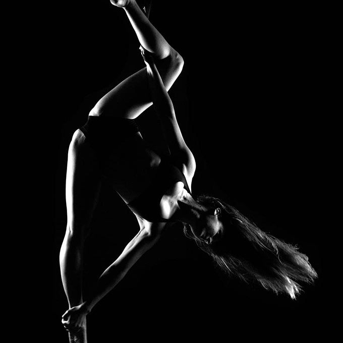 Our skilled female pole dancer demonstrates incredible strength, balance and flexibility in her elegant performances