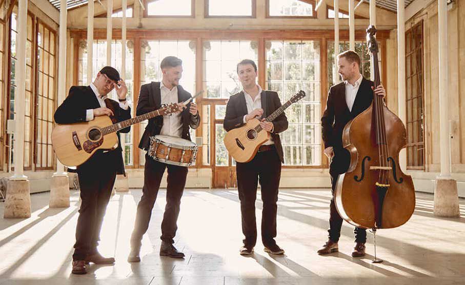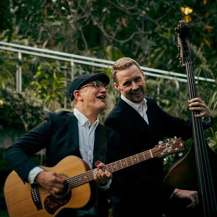 Offering amazing vocal harmonies, our four-piece roaming band sing and play acoustic sets with double bass, guitar and percussion