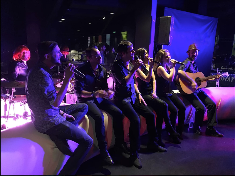 Our dynamic live musicians can also get a guitar and a pair of microphones and play and sing some pop acoustic covers. The perfect music show for festivals, private parties, weddings or after dinner experiences, our energetic party band will delight young and old generations of pop music whatever the occasion.