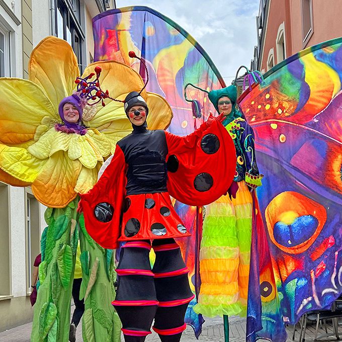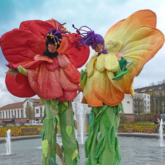 If you're interested in hiring our fantastic flower stilt walkers for your upcoming event, contact any of our event and entertainment experts who are standing by to guide you through our booking process, and answer any questions or concerns you might have.