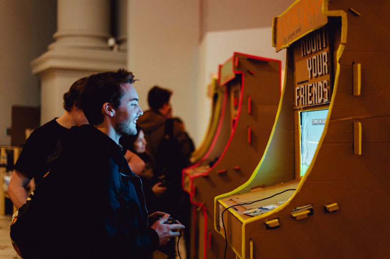 Using video game entertainment, custom arcade machines, analogue installations using the latest technologies, and simple and creative physical games designed by game makers around the world we guarantee that guests will be laughing, interacting and making new friends.