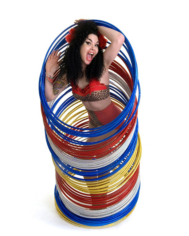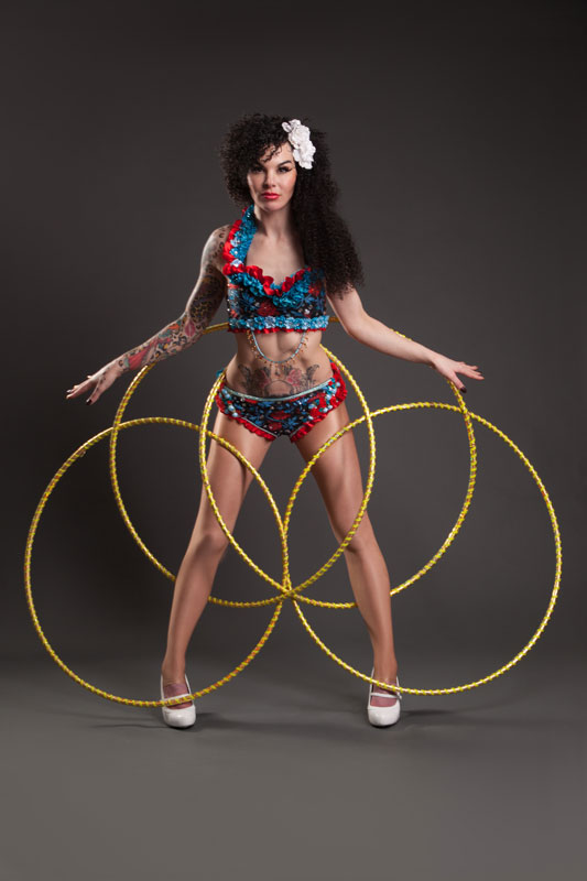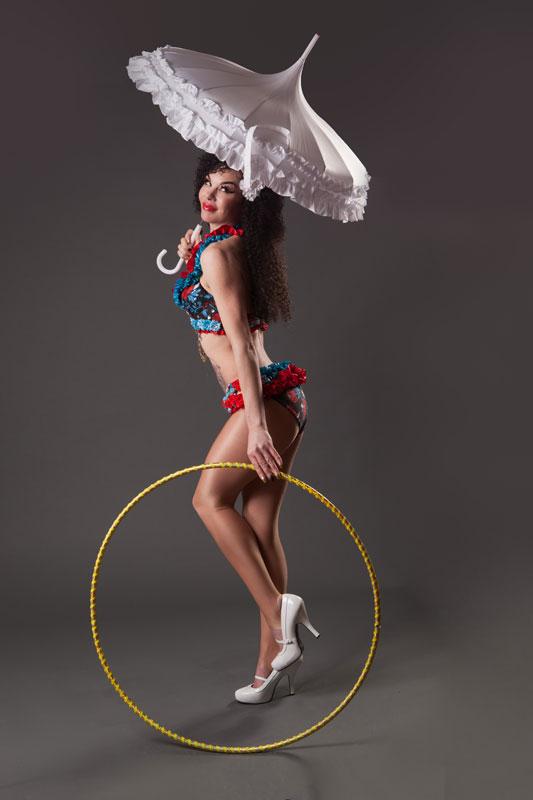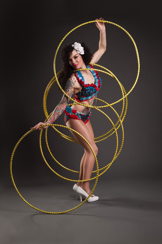 Book our elegant, skilled, and sensational hula hoop performer for your upcoming special event or social gathering, and watch as her heart pounding hula hoop show engages with guests, keeping them entertained within a matter of seconds. Your guests are bound to love our sensational and talented pin up hula hooper, as she creates an assortment of bespoke live performances that truly helps our hula hoop act shine above the rest. Our hoop performer can perform with multiple hoops to create visually pleasing illusions. Our unique circus act will captivate guests with elegant hip movements and strikingly raw talent.
