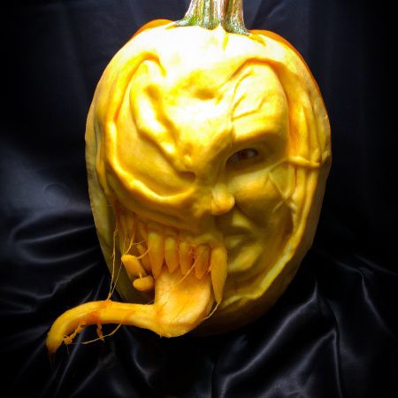 Her exceptional attention to detail turns ordinary pumpkins into lifelike faces, movie characters or promotional pieces featuring logos and branding