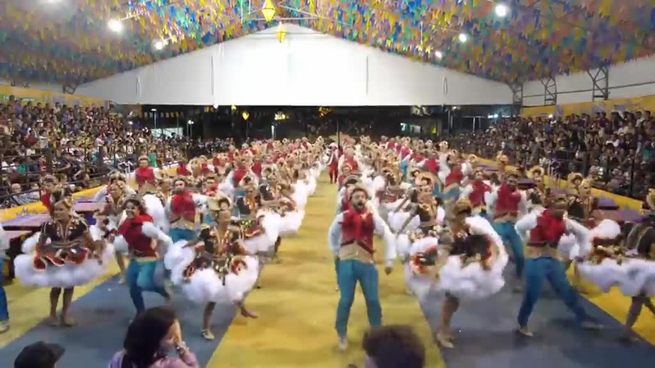 Led by an announcer that calls out the steps, this traditional Brazilian square dance is performed by couples who dress as caipiras