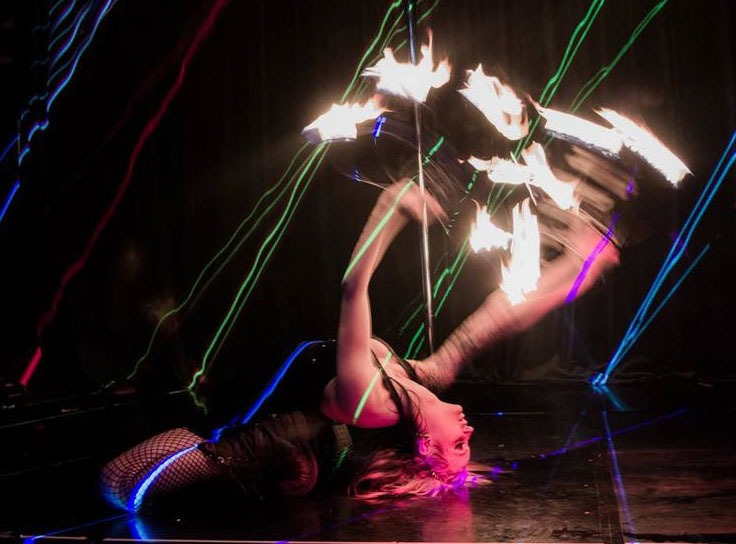 Dancing competitively since childhood, Luna has studied numerous dance styles including jazz, tap, ballet, hip-hop and Irish dancing and moved on to incorporate burlesque, pole, circus and exotic dance into her repertoire as an adult. Completely versatile, Luna offers a range of performances and themed acts that can also incorporate an aerial fire show including fire breathing, body burning and large-scale fire stunts.