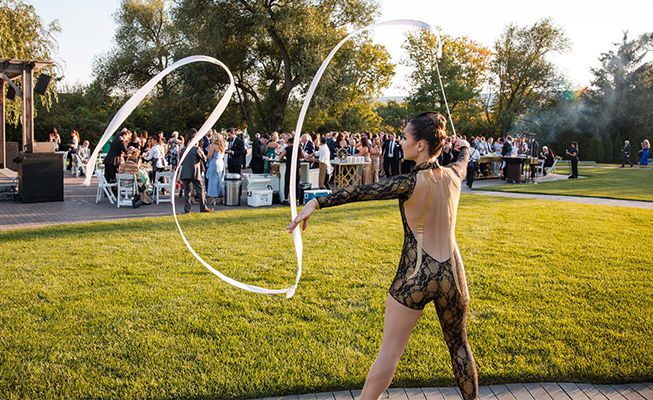 Skillfully manipulating colorful ribbons, these dancers enchant guests with mesmerizing patterns as part of a choreographed routine or ambient set