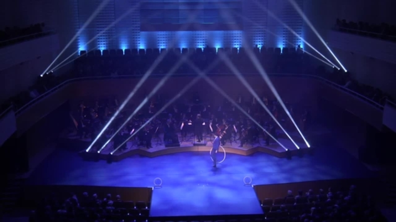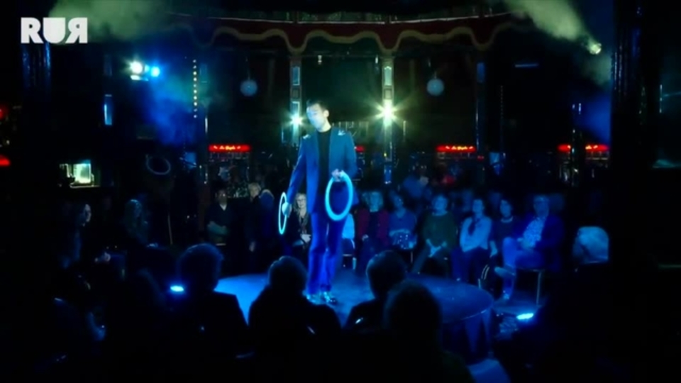 As you can see by watching the videos above, he can perform alongside other performers such as live musicians or even a full orchestra. Accompanied by live music, he can perform mind-blowing rings juggling tricks with exquisite coordination with the music.