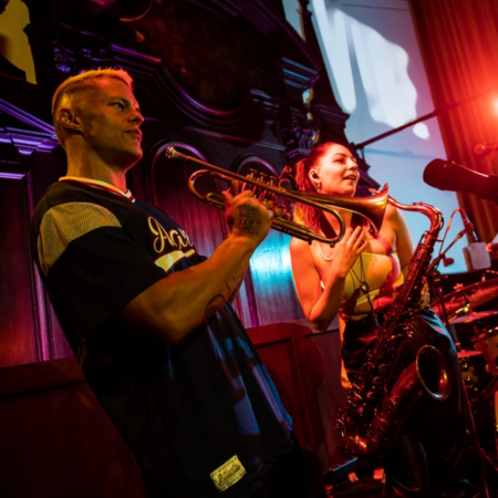 Our vibrant 5-piece group consists of a DJ, vocals, sax and trumpet, with the option of adding drums and trombone for an extra layer of excitement