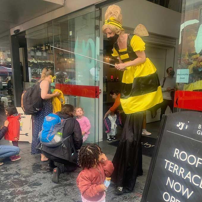 Our BEE-autiful Stilt Walkers wear brightly-coloured costumes complete with wings and headpieces as they bumble about engaging with guests