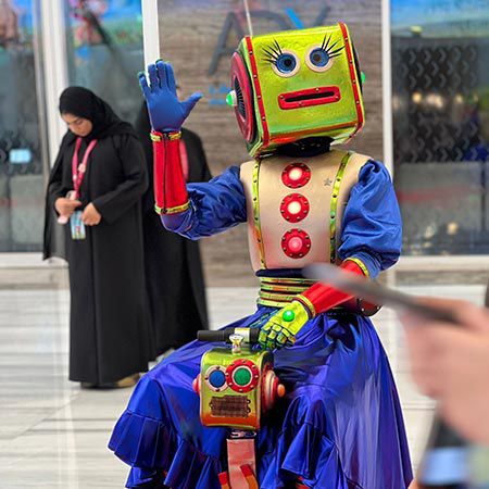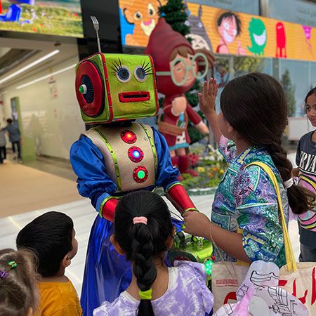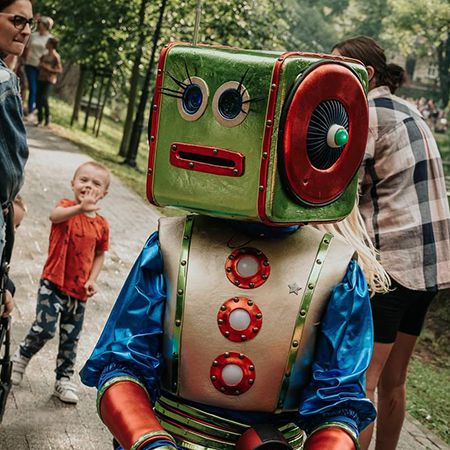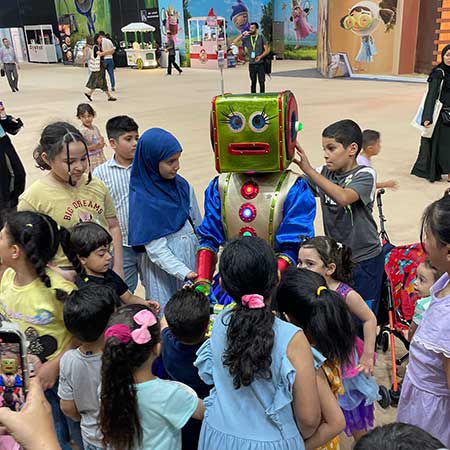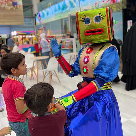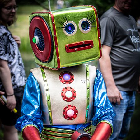 Based in London, our roving cartoon robot is available for school and mall events, festivals, trade shows and parties