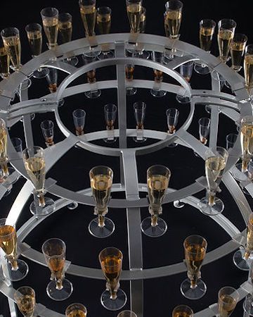 This strolling champagne dress creates a striking visual feature, capable of holding up to 100 champagne flutes at once