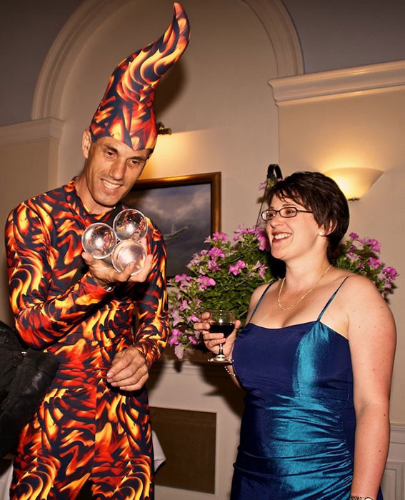 Able to manipulate one to six balls at once and amaze the guests with ambient glow club juggling to finish