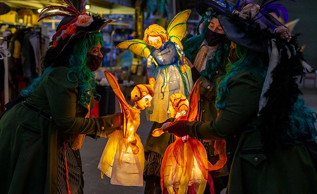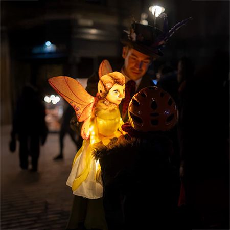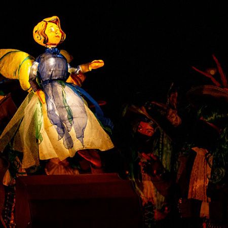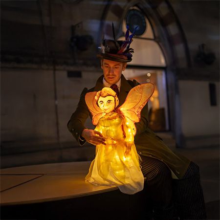 Illuminated faerie puppets bring a magical glow, creating an enchanting visual experience that captivates audiences at festivals and special events