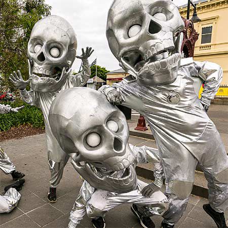 Based in Victoria, our friendly giant walkabout skulls are available for corporate and private events including across Australia and worldwide