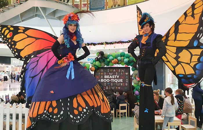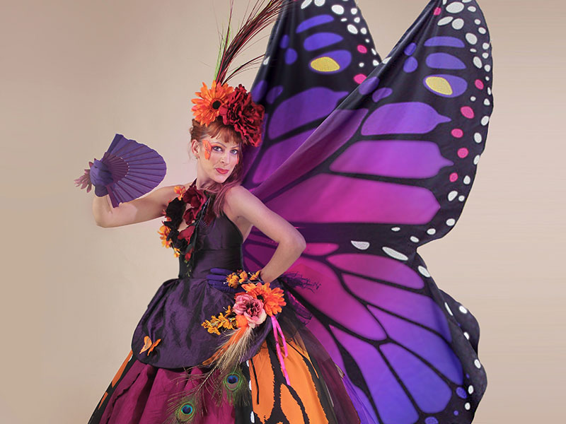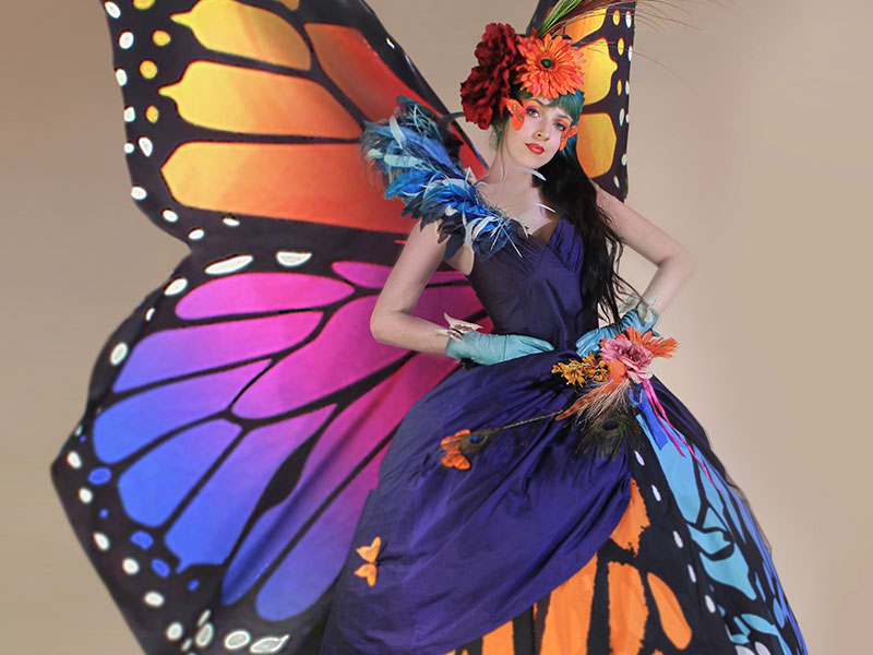 With full skirts, enchanting wings and adorned with flowers and feathers, this butterfly themed interactive entertainment is sure to create an impressive visual spectacle that will turn heads.