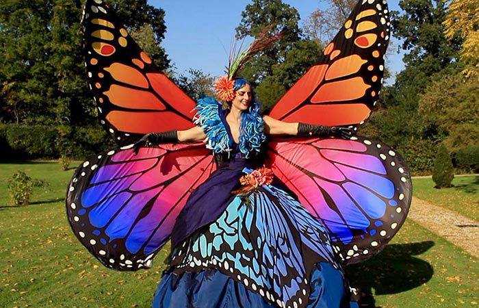 Always friendly, smiling and graceful, this beautiful roaming entertainment also makes a head-turning spectacle as our butterfly ladies glide across sweeping lawns, down long drives, or large spacious venues.