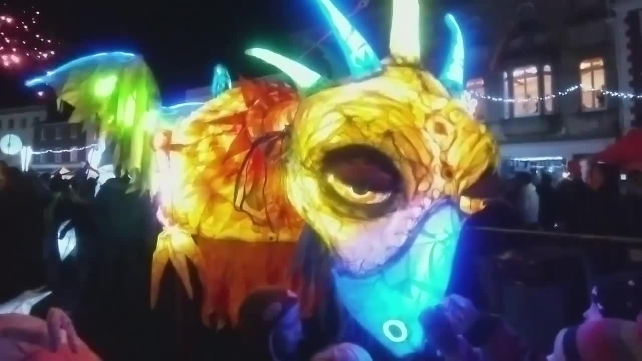 With beautiful rainbow 'feathers' that are illuminated by controllable LED lighting at night, he makes a glorious addition to festivals or parades