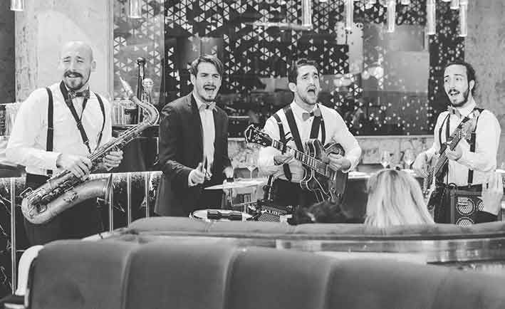 " « I would just like to write a review to let you know how wonderful these guys are! They performed at our wedding on at Chateau Canet in France. From the moment I booked them, they were helpful and accommodating. On the night of the wedding they were incredible; our dinner ran on a little late so they played around the tables which really got the evening started. All of my guests commented on how well they performed and thoroughly enjoyed the evening. Thank you for making our wedding perfect." "