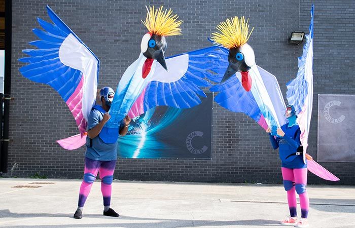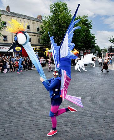 Brightly coloured and highly, engaging our roaming Crane duo are the perfect choice for carnivals, garden parties, tropical-themed events and more