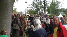 The roaming characters’ story is that they are made of 100% Eco-certificate wood. Powered by renewable energy sources of wind and solar energy and equipped with their eco-mobiles they wander and drive through their wooden world, clutching a grass suitcase filled with all kind of other bio-powered accessories. To add to the effect, this wooden walkabout act even makes creaking noises. During their walkabout act they get up to all sorts of things like greeting trees, interacting with people in the audience and performing micro-plays.