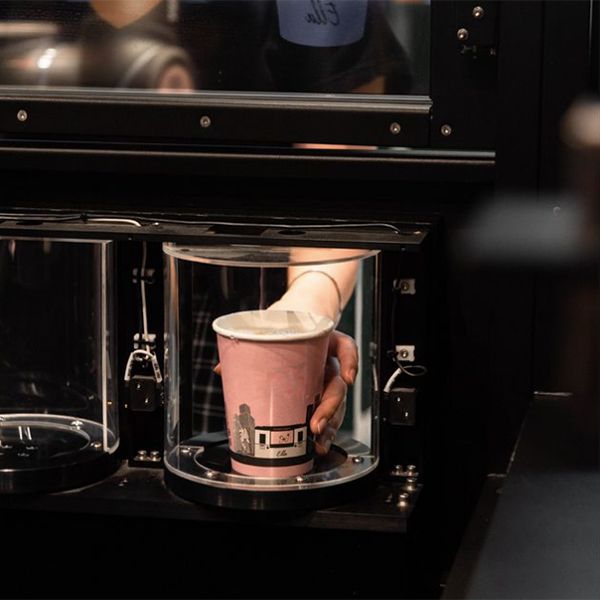 This Robot Barista offers a menu of Flat Whites, Cappuccino, Americanos, and Lattes with additional syrup add-ons such as caramel and vanilla!