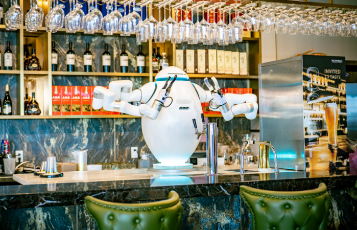 This robotic drink service can serve as an barista or mixologist and can prepare over 100 beverages including cocktails, coffee, boba tea and more