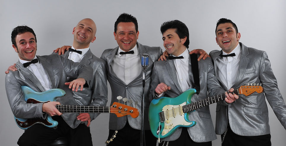 This energetic quintet knows how to put on a show! Funny, exhilarating and packed full with style and attitude this band will have audiences rockin’ and rollin’ all night. Complete with authentic costumes from the 1950’s and 60’s, this band’s show is the ultimate retro experience. Their impressive repertoire, with over 200 songs, features Rock ’n’ Roll, Twist, Country and Italian-American songs including artists such as Dean Martin, Louis Prima, Frank Sinatra and Elvis Presley.