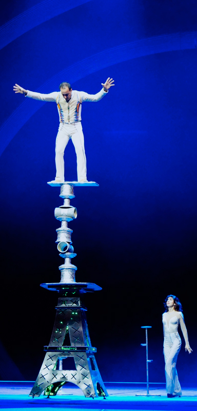 A unique circus act performed by two skilled acrobats boasting superhuman balance and great technique