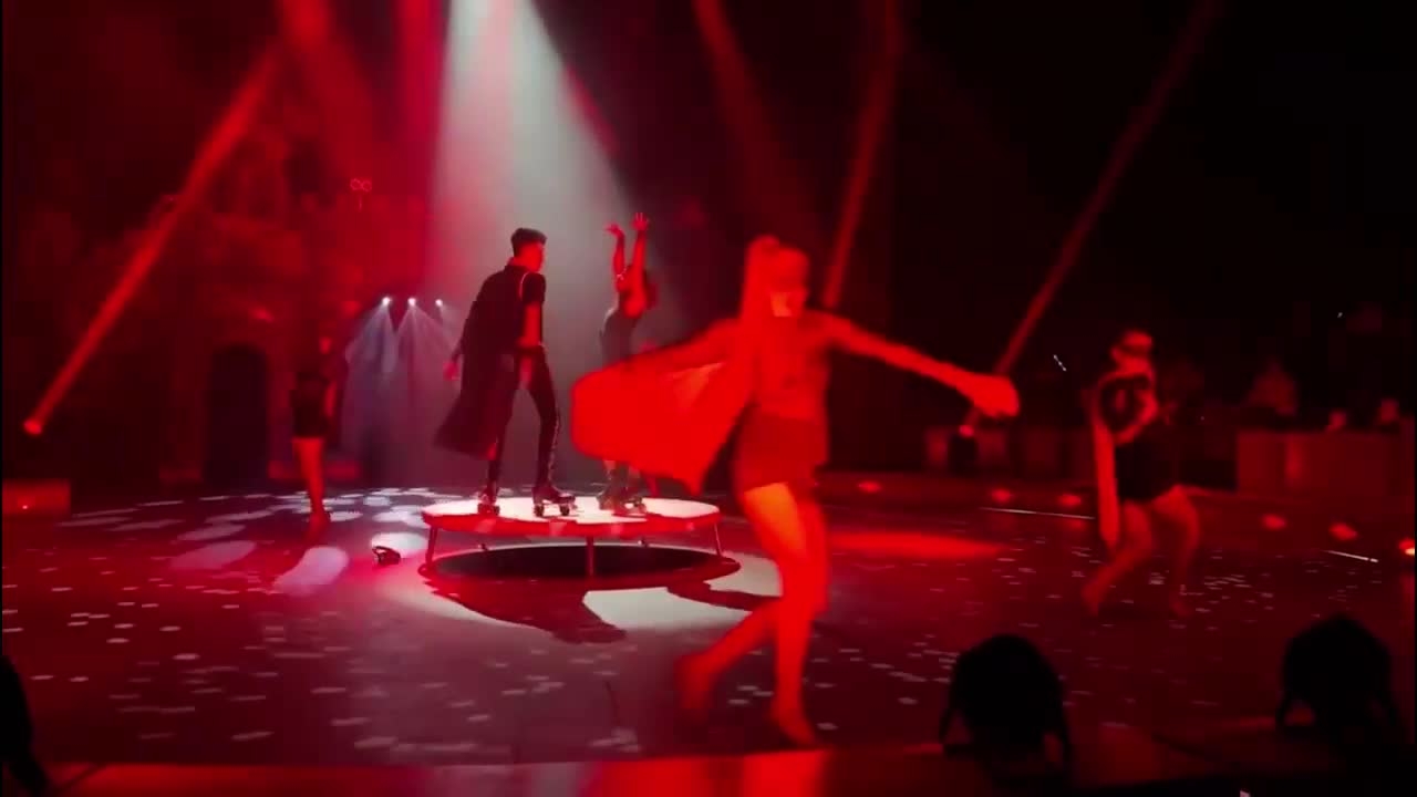 This skating duo can offer your audience an awe-inspiring rollerskating performance as they spin at speed on a circular platform