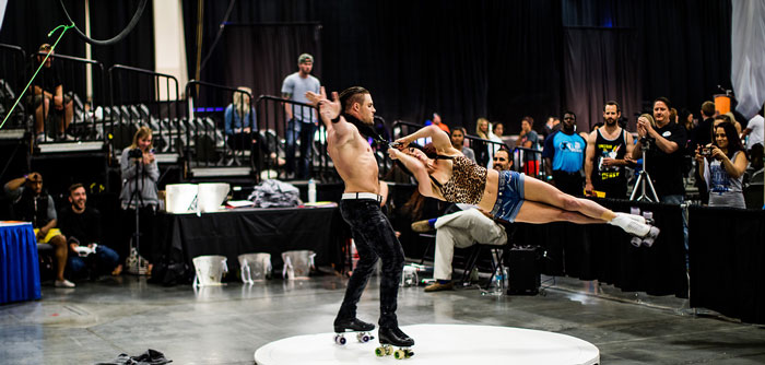 Our acclaimed acrobat duo have amazed audiences all over the world with their stunning roller skating dance act, including performances at major events and festivals like WBEC West Convention and FitCon 2016 as well as performing with the Circus Juventas in 2015. Our roller skating duo are also highly talented aerial acrobats, capable of captivating any audience with their award winning aerial rope and trapeze acts (link).