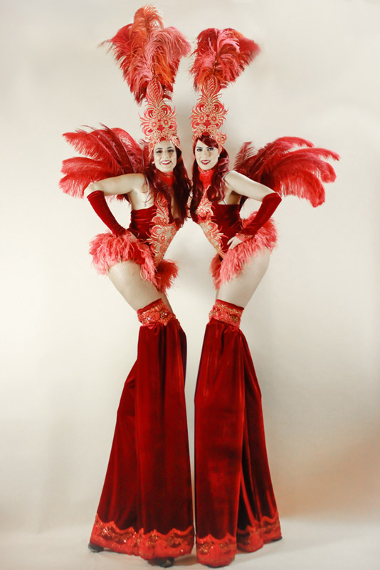 Scarlett Entertainment's beautiful feather showgirls are available to either greet guests as they arrive as a standard foot act or as towering stilt walkers that will captive young and old the moment they gaze upon our beauties. Our stilt entertainers can also supply amazing walkabout event entertainment complimenting any theme or style you might be planning on using, our performers are versatile and will work hard to accommodate you and your event. Our showgirl stilt walkers are ideal for corporate events, private parties, themed events, award ceremonies, and many more options.