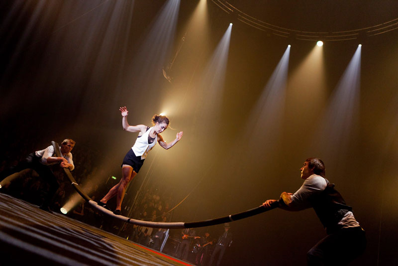 A Russian bar act consists of two porters and a ‘flyer’, the brave gymnast who defies gravity by reaching great heights with the help of a Russian bar and the two ‘bottom’ people. A routine that involves transitional aerial moves and tempo swings, this circus stage show requires great concentration, perfect balance and an impeccable technique.