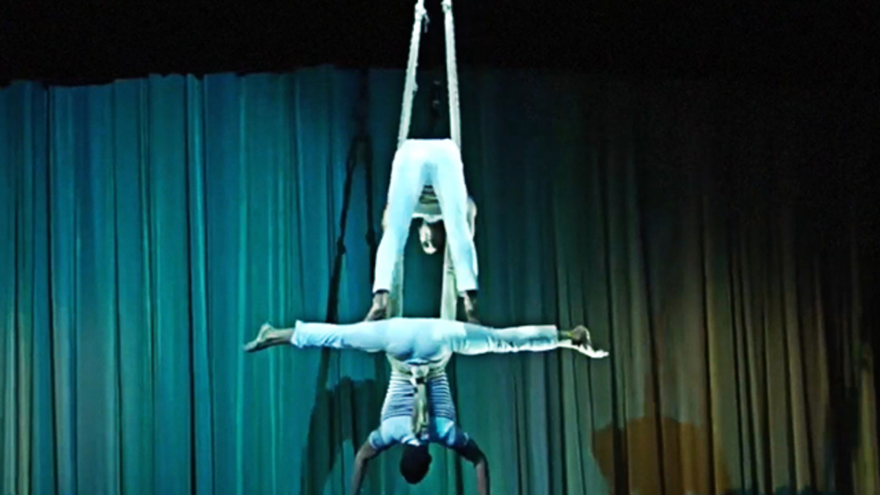 This act is a unique mix of highly skilled aerial artistry with elements of drag and boylesque