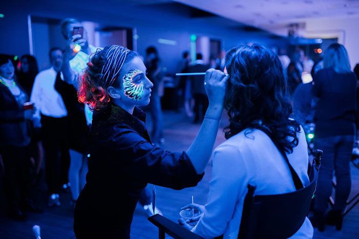 Create a fun experience for guests as these face painters can also offer glitter tattoos, glow-in-the-dark face paint and costume makeup