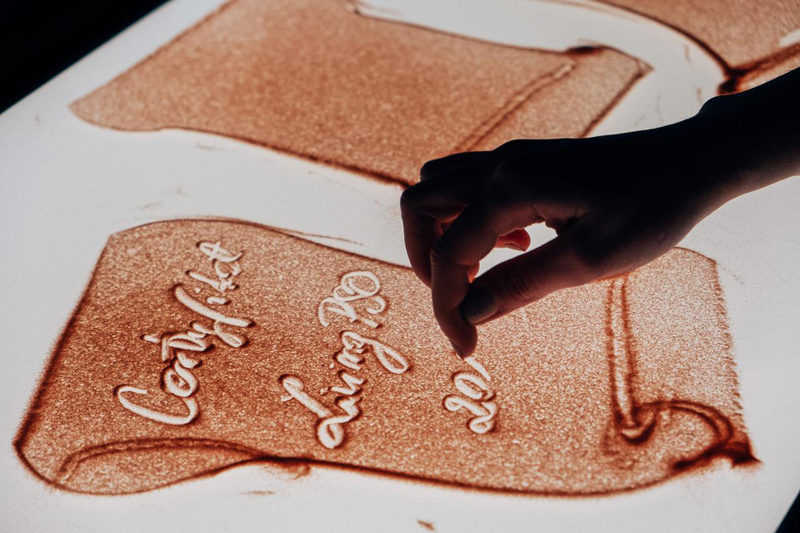 A sophisticated story-telling process, custom sand stories can be produced with any ideas you have in mind. A specialist in translating these ideas into reality, our event sand artist is committed to work closely with you in order to create sand art stories that perfectly represents your brand or conveys your message effectively.