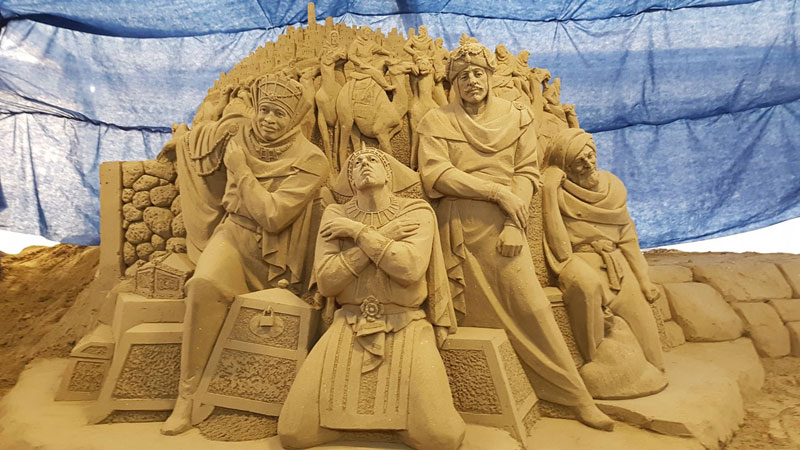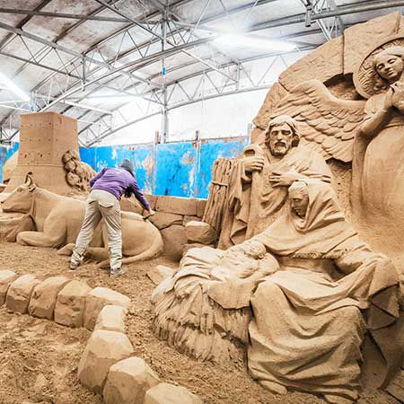 Our sand sculptures artists also offer teambuilding workshops for people interested in learning the art behind this artistic sand sculpture.