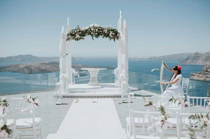 Are you getting married in Santorini or one of the Greek islands? This Greek harp player boasts extensive experience delivering live music for ceremonies. Having been trusted by numerous brides and grooms over the years, our wedding harpist is guaranteed to set the perfect mood for your special day.