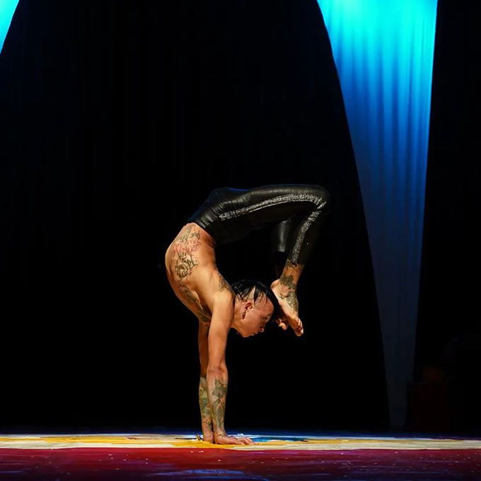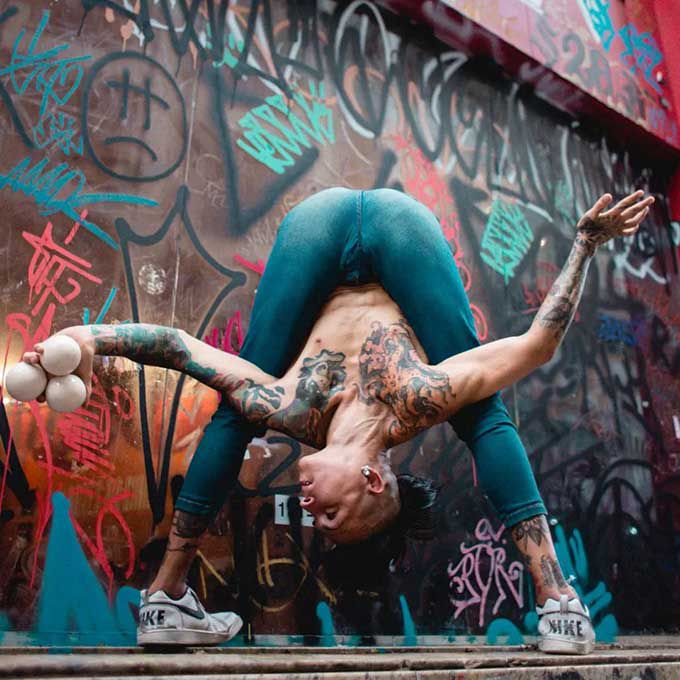 He has many years of performance experience, has studied at various circus schools and is specialised in contortion