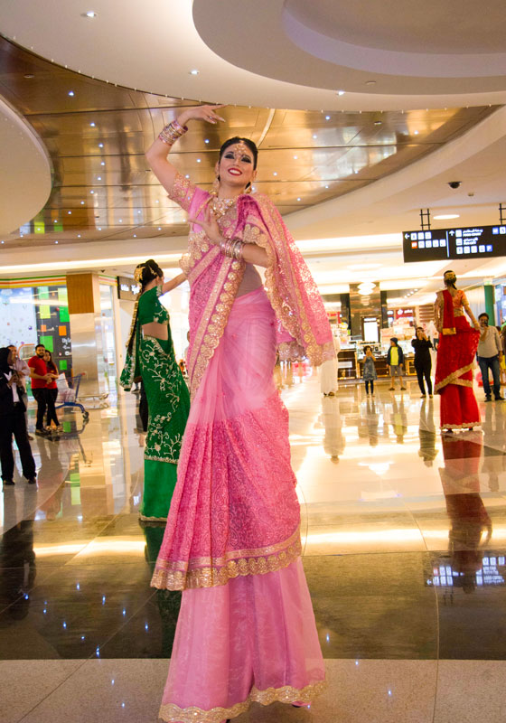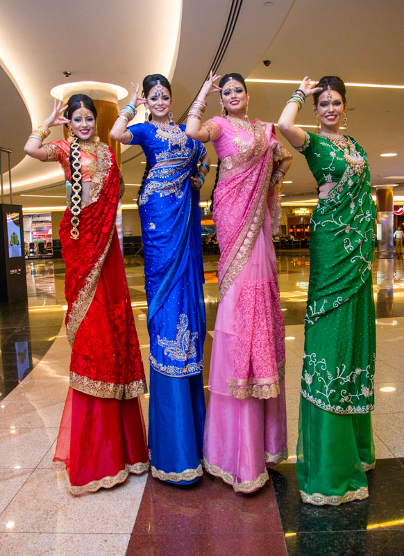 A hugely popular entertainment option, this roaming stilt act is especially suitable for bollywood themed events, our stilt walkers can dance and strike a pose! Our exceptional Sari Stilt Walkers also work well for brand or product launches, grand openings, shopping centres, receptions, galas, exhibitions and much more.