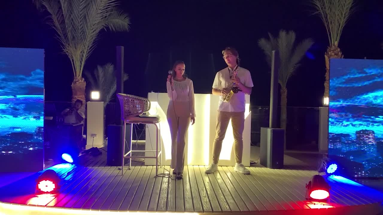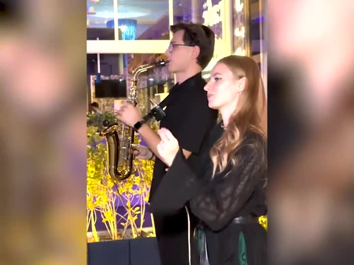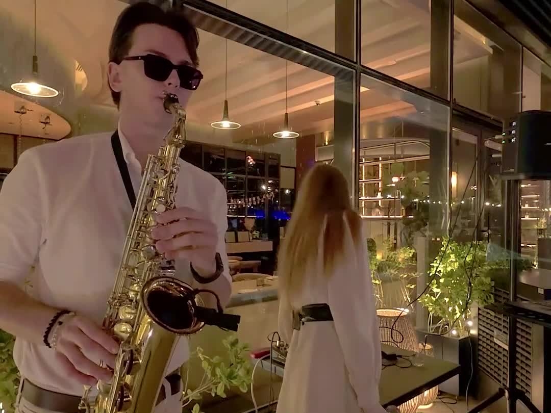 This male saxophonist is accompanied by a female vocalist. Together, they offer sublime ambient music from a varied setlist