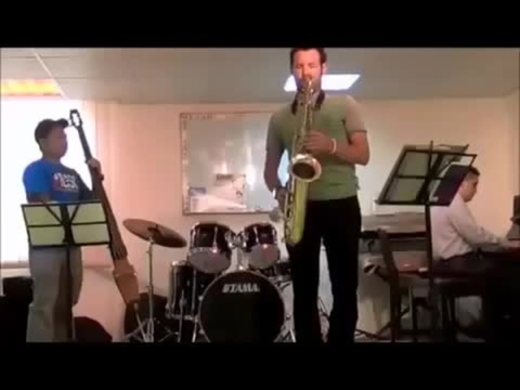 Solo with backing tracks - Adam plays along to backing tracks of both popular music and jazz standards taking the place of the lead vocal in each case.