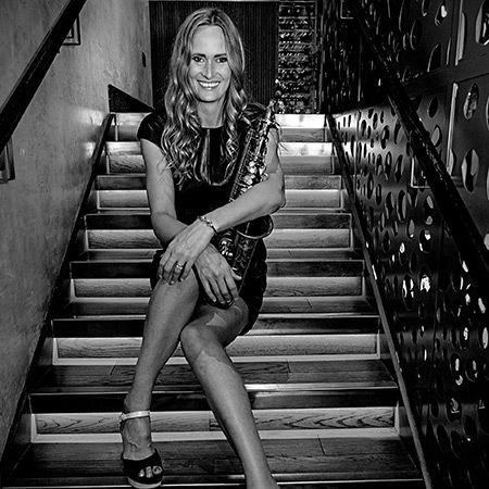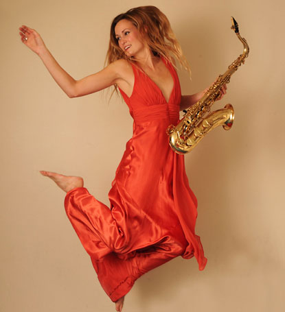 She is available to perform freestyle/walk around sax with a DJ performing funky house, lounge, latin and jazz. She is also available with her jazz band or with female percussionist and electric violinist to add wow factor to your event.